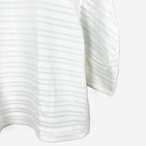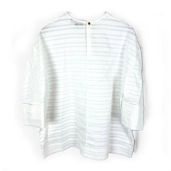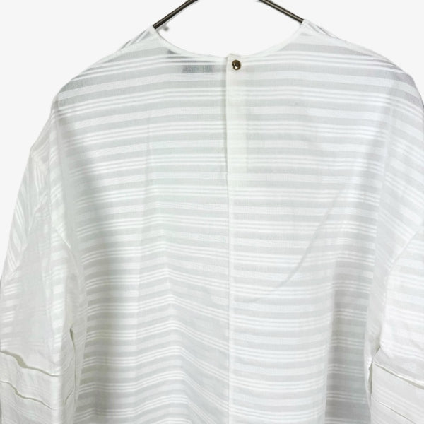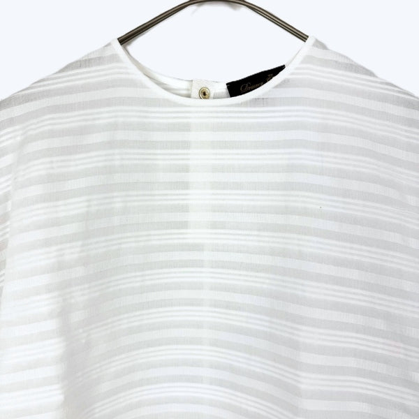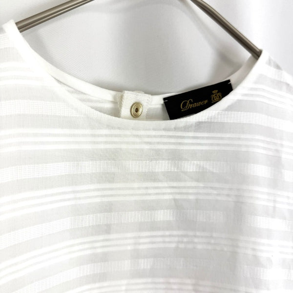 【中古】ドゥロワー Drawer コットンピンタックショートスリーブブラウス マルチボーダー 透け感 ホワイト 白 i0421h00240