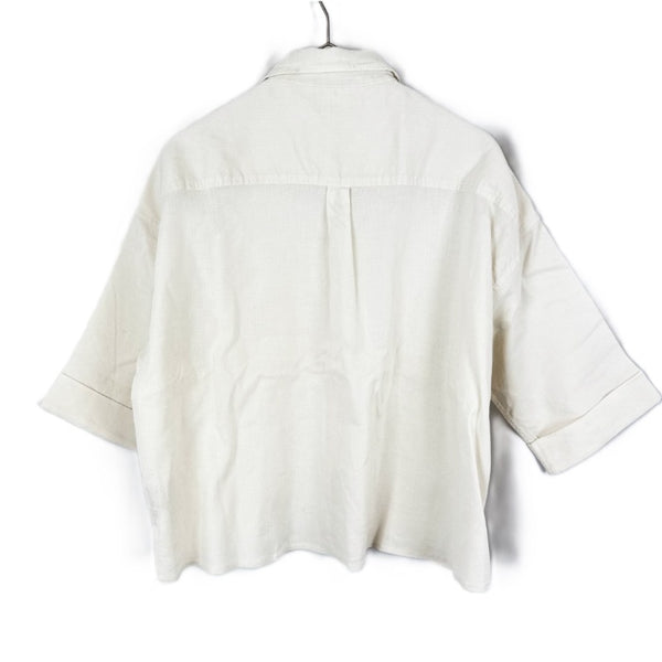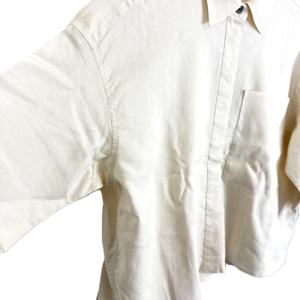 【中古】イエナ IENA 半袖リネンシャツ ワイドシルエット サファリシャツ風 アイボリー i0526y0108