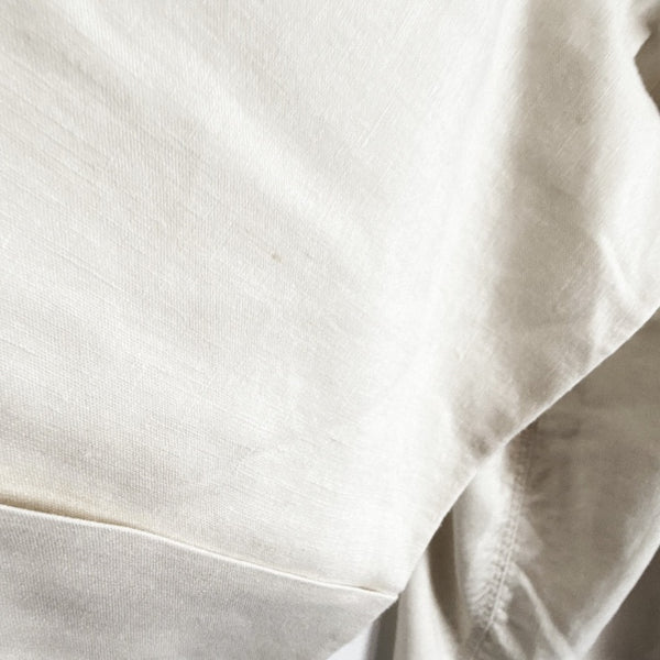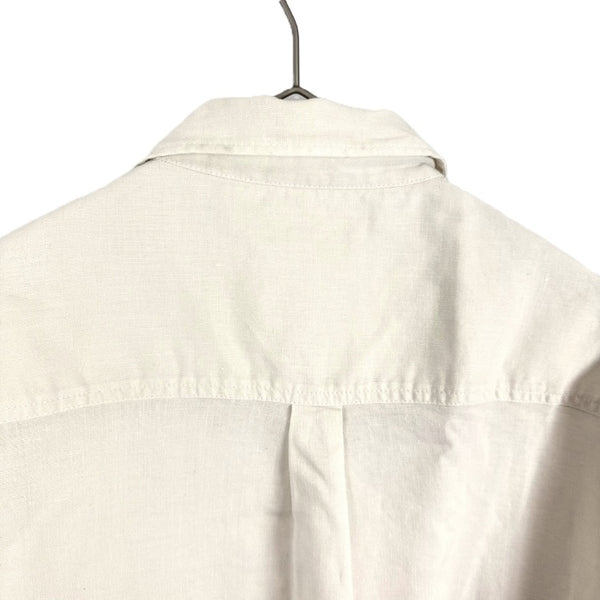 リネン混で涼しげな印象の半袖シャツです。ワイドシルエットで着痩せ効果。少し透け感があります。 使用感はあまり感じられませんが、首元内側に汚れがあります。その他気になる所はなく全体的に綺麗なお品物です。