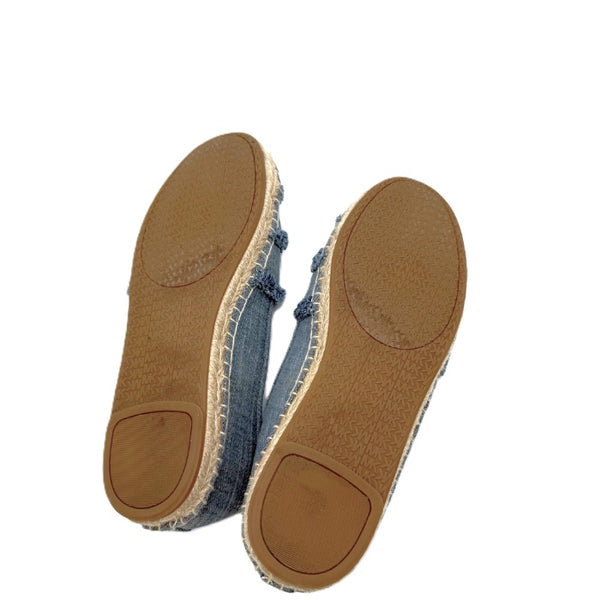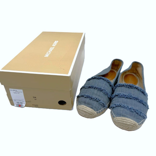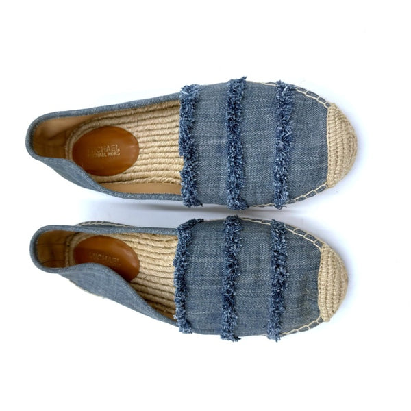 【中古】マイケルコース MICHAEL KORS エスパドリーユ スリッポン デニム フリンジ ライトブルー ベージュ i0619wq0555