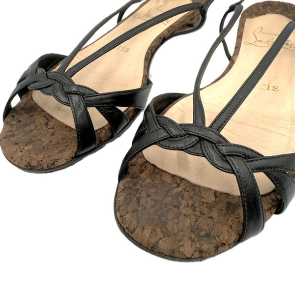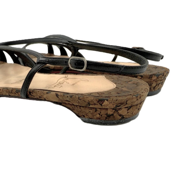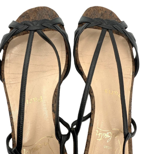 【中古】クリスチャンルブタン Christian Louboutin サンダル ストラップ コルク ローヒール ブラック ブラウン i0623k0128