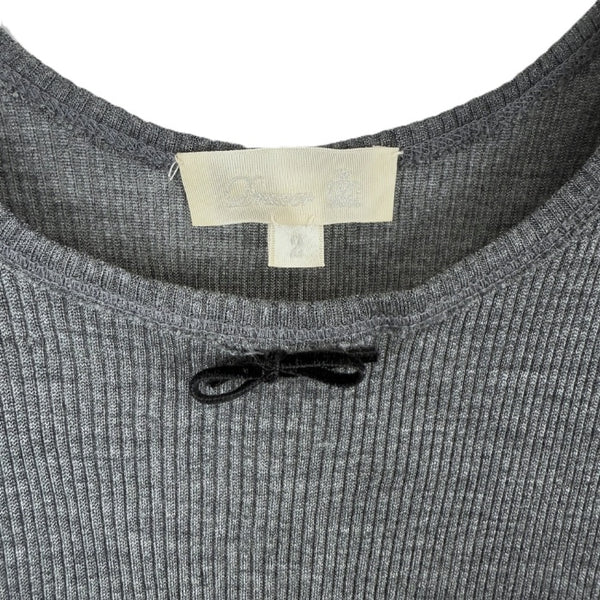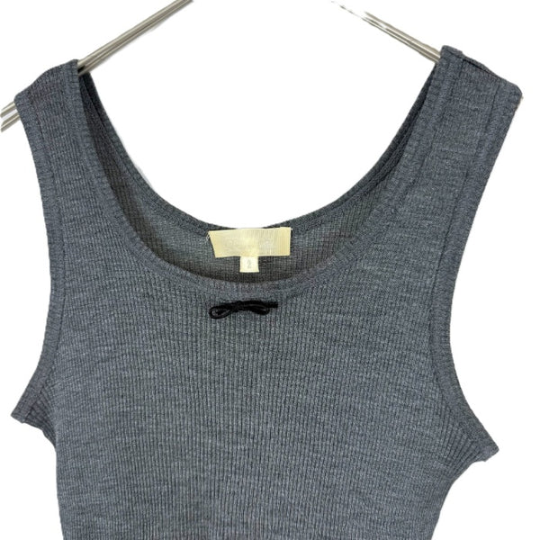 胸元の小さなリボンが可愛い細リブタンクトップです。薄手で少し透け感があります。 背中下の方に小さな生地ツレがありますが、気になる汚れはなく全体的に状態の良い綺麗なお品物です。