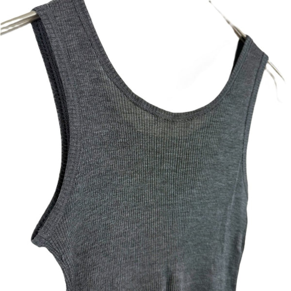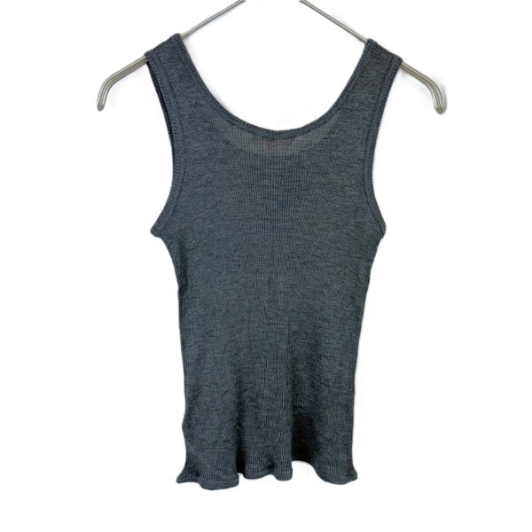 【中古】ドゥロワー Drawer 細リブタンクトップ 胸元リボン シルク 薄手 透け感 チャコールグレー i0623k0010