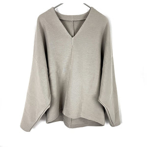 ドルマンシルエットでストレッチのきいた気やすいデザインのVネックカットソーです。 毛玉、生地ツレがありますが、気になる汚れはなくまだまだご着用いただけるお品物です。