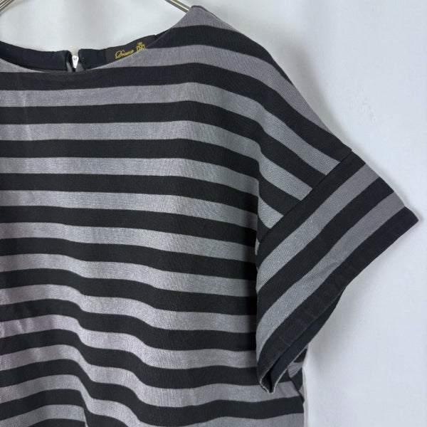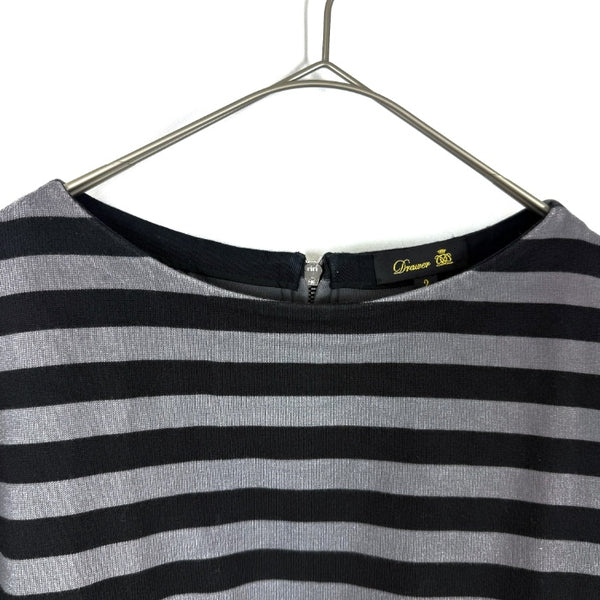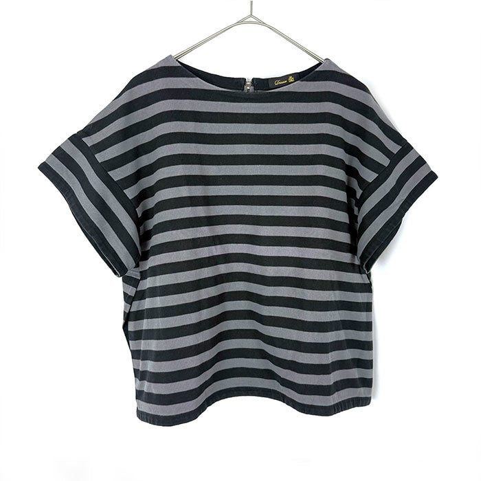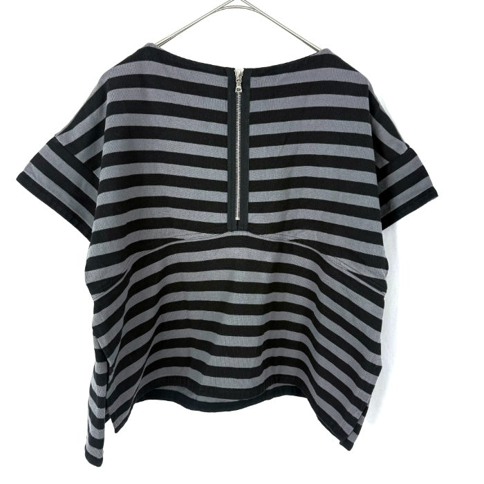 【中古】ドゥロワー Drawer 半袖ボーダーカットソー サイドスリット ゆったり グレー ブラック i0210o00415