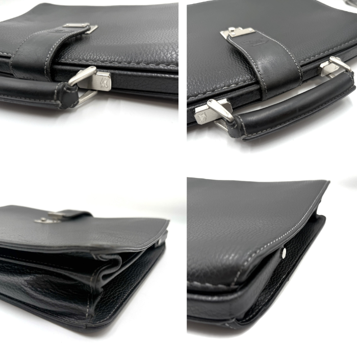 シルエットが綺麗なレザービジネスバッグです。型崩れしにくいしっかりした硬めのバッグです。 内側は定番のチェック柄。傷、角擦れ、剥げ、金具のくすみ傷が少々あります。 気になる汚れや壊れはなくまだまだご使用いただけるお品物です。