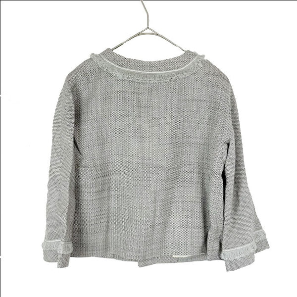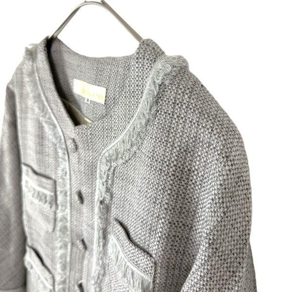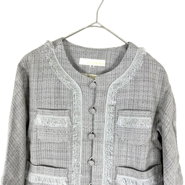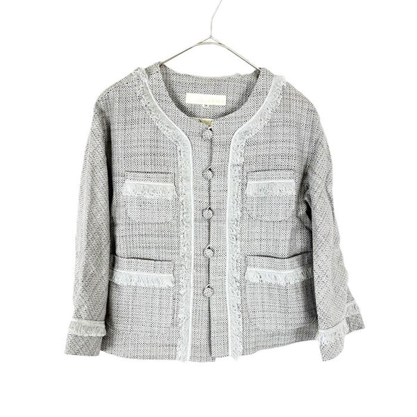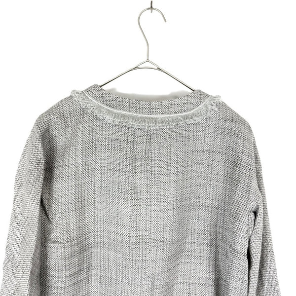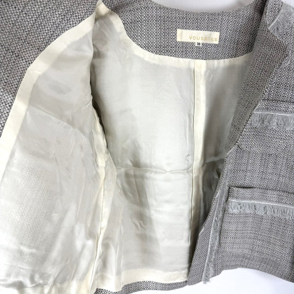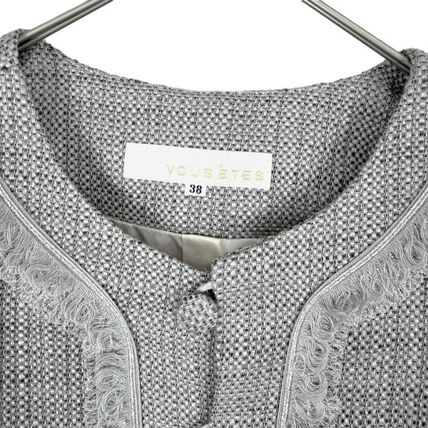 【中古】VOUS ETES ヴゼット フリンジツイード ジャケット ノーカラー シルバー グレー フォーマル セレモニー 卒業式 入学式 i0515n0033