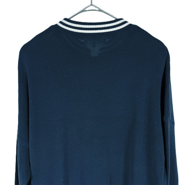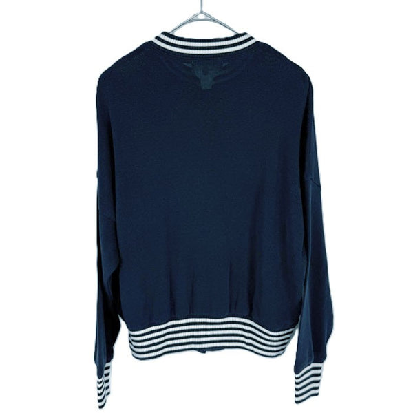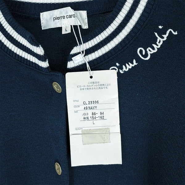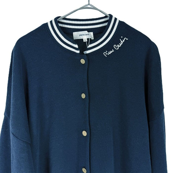 上品さとカジュアルさを兼ね備えたピエールカルダンのカーディガンです。 襟・袖・裾に施されたホワイトのストライプリブがアクセントになり、爽やかでスポーティーな印象に。 未使用品です。