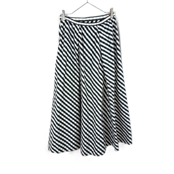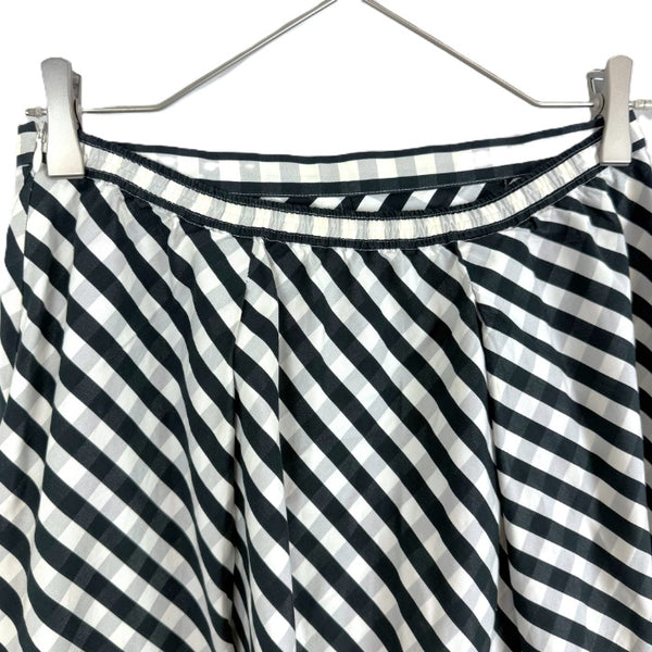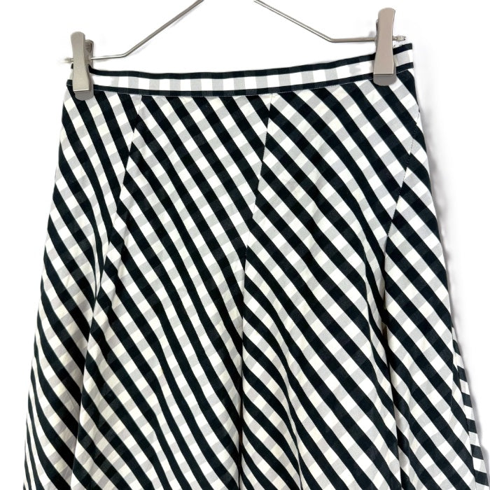 【中古】ドゥロワー Drawer フレアスカート ロング 斜めストライプ ギンガムチェック ホワイト ブラック グレー i0619a00567
