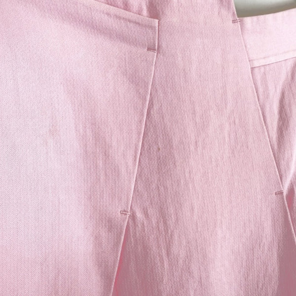 優しい印象のピンクカラーが可愛いタックスカートです。アシンメトリーなシルエットがおしゃれ。 ウエストに挟みハンガー跡あり。気になる汚れや傷みはなく、全体的に状態の良い綺麗なお品物です。