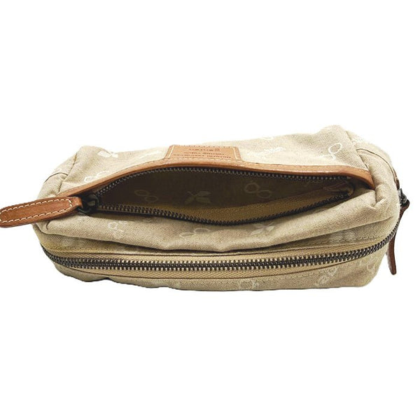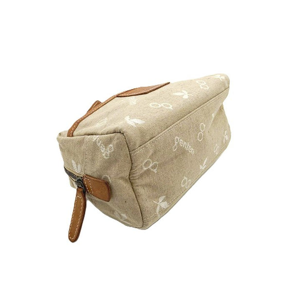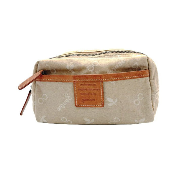 【中古】genten ゲンテン キャンバス×レザー ポーチ 小物入れ 化粧ポーチ ベージュ 日本製 i0727tq0016