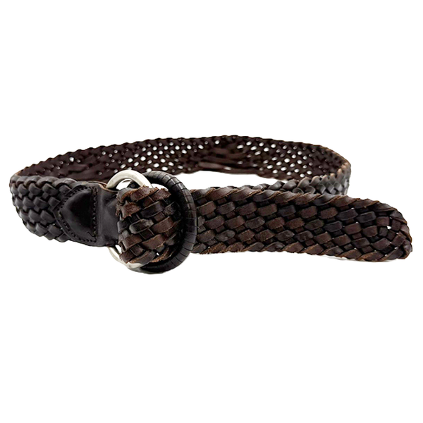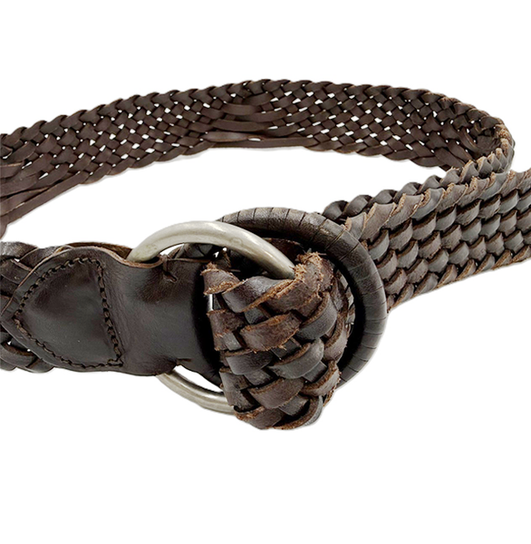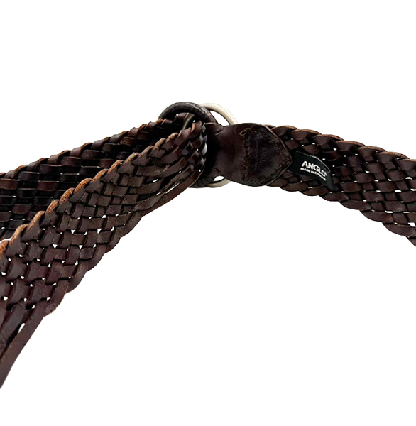 【中古】ANGLO レザーベルト 編込み メッシュベルト ダークブラウン i0731wq0021