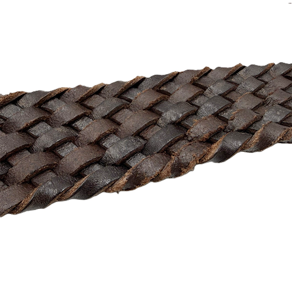 存在感のある編込みデザインが魅力のレザーベルト。 しっかりと編み上げられた厚みのあるレザーが、コーディネート に力強さと深みをプラスします。 多少の使用感はありますが、まだまだご使用いただけます。