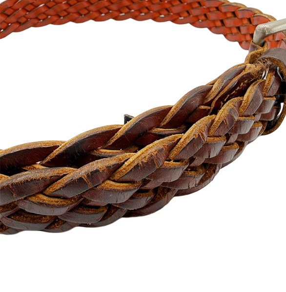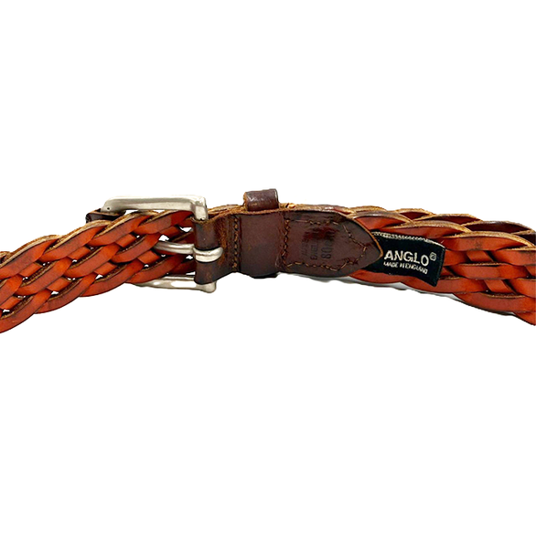 【中古】ANGLO レザーベルト 編込み メッシュベルト ブラウン i0731wq0061