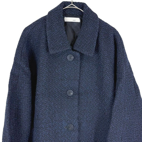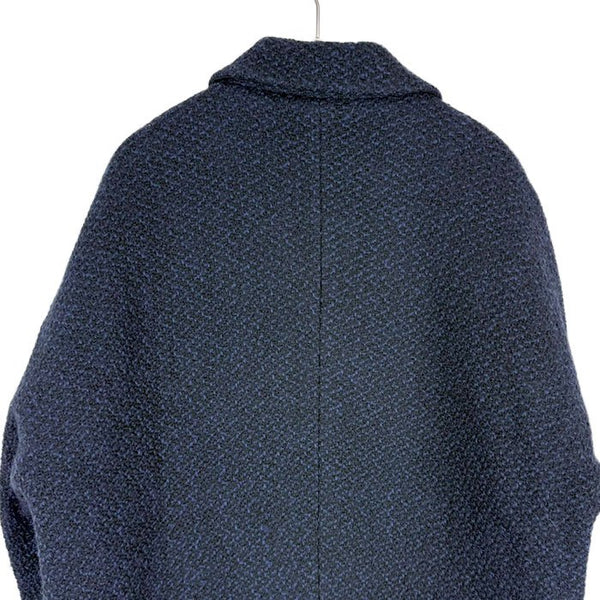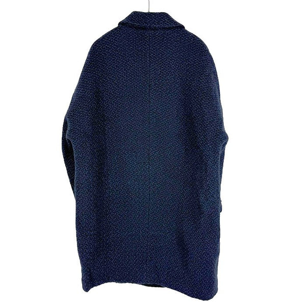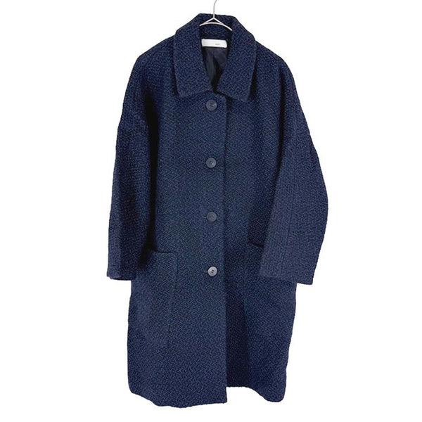 KNOTTのネイビーコートです。表情のあるウール素材で、シンプルながらも上品な印象に仕上がっています。 程よいゆとりのあるシルエットで、きれいめにもカジュアルにも合わせやすい一着です。 気になる汚れはなく全体的に状態の良い綺麗なお品物です。