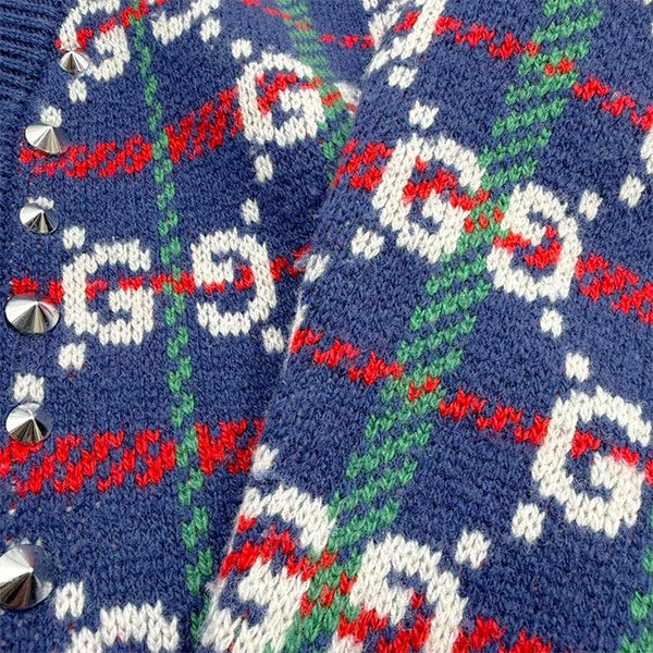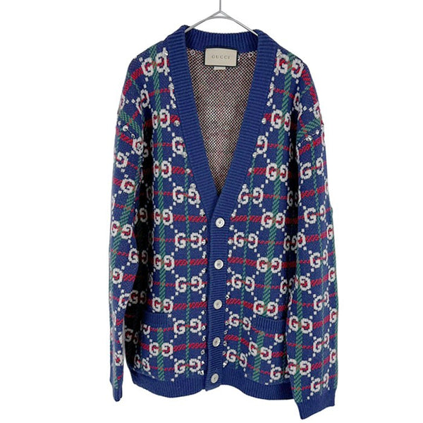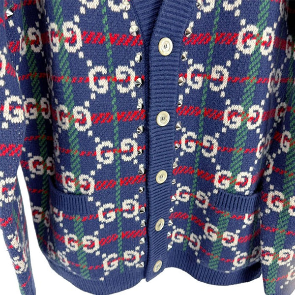 【中古】GUCCI グッチ GG柄 ニットカーディガン ウール ブルー スタッズ i1024oq006550