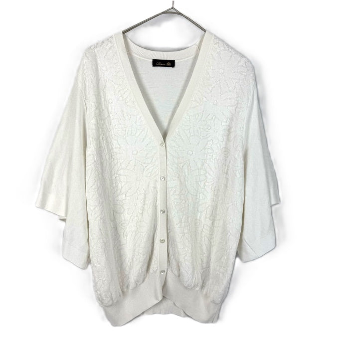 【中古】ドゥロワー Drawer 花柄 レース編み カーディガン 七分袖 レディース ホワイト系 Vネック 羽織り ニットカーデ 上品 大人カジュアル i0815u00318