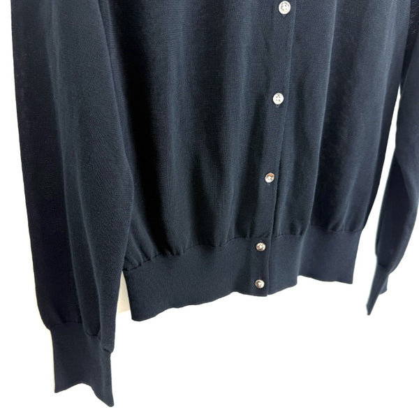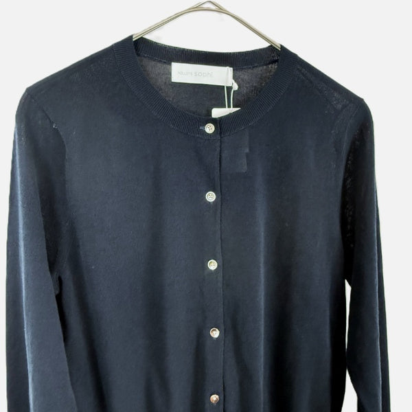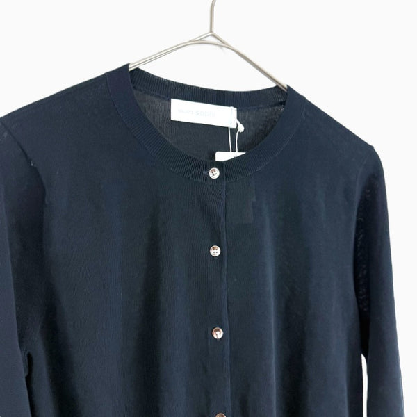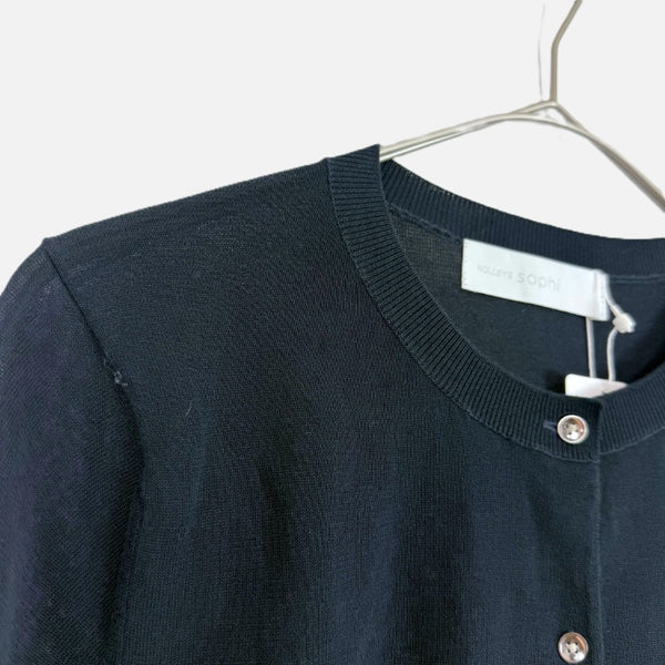 【中古】ノーリーズソフィー NOLLEY'S sophi クルーネックカーディガン シンプル 薄手 透け感 ネイビー 紺 i0417m0033