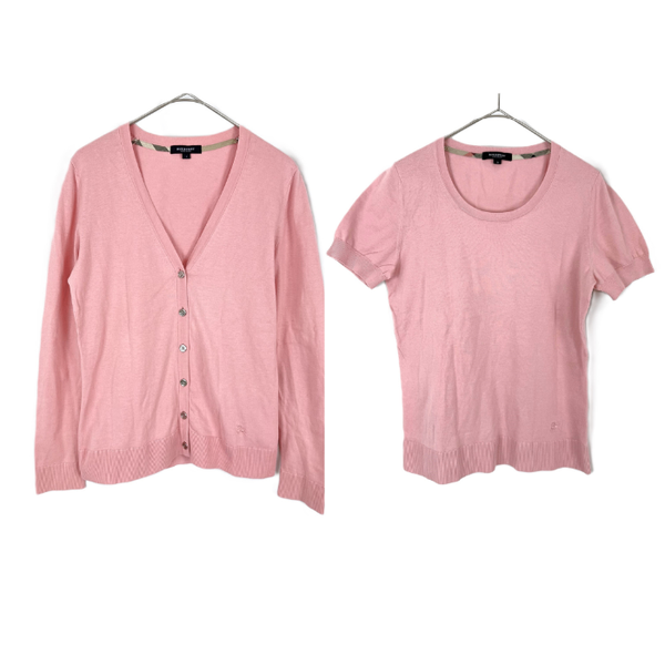 【中古】バーバリー BURBERRY アンサンブルニット 半袖 カーディガン セット コットン くすみピンク i0606aq01520