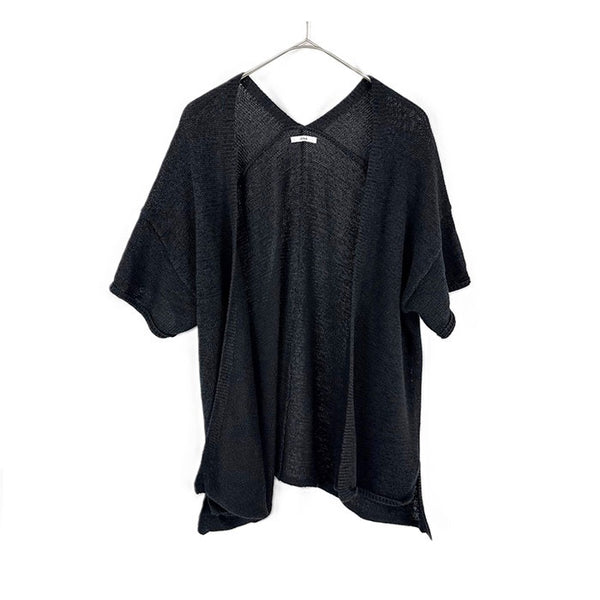 ボタンレスでサラっと羽織れる半袖カーディガンです。 毛羽立ち少々、肩に少しハンガー跡のような伸びがありますが、気になる汚れはなく全体的に綺麗なお品物です。