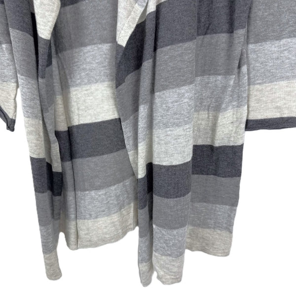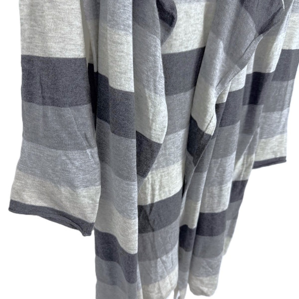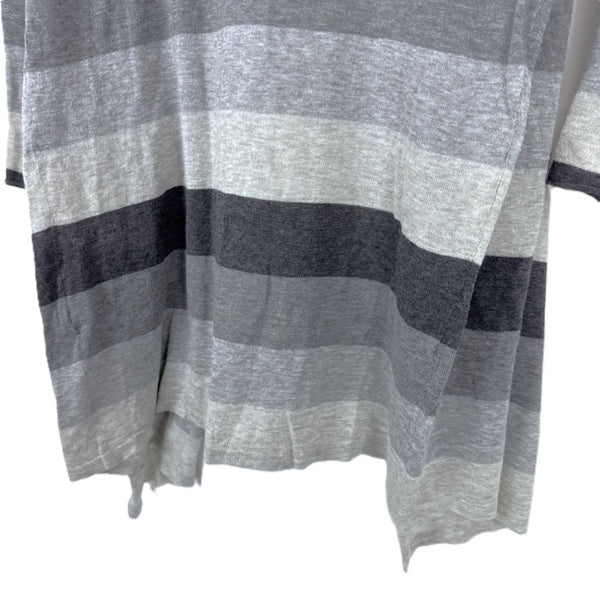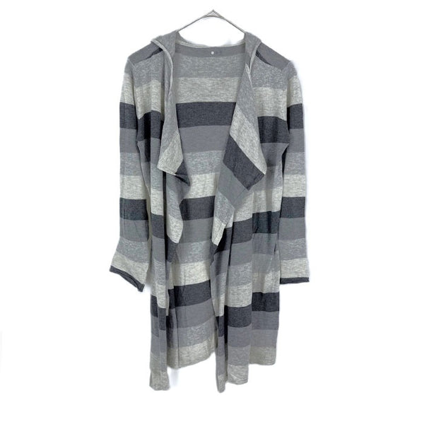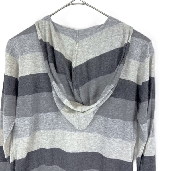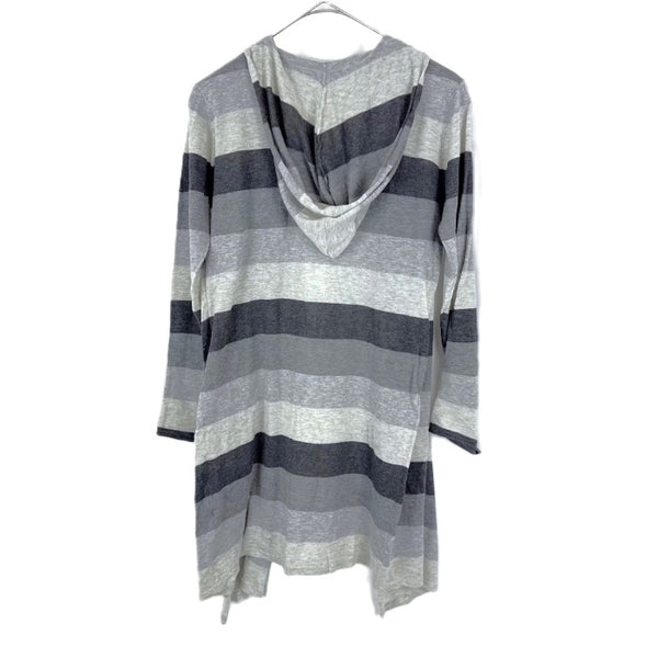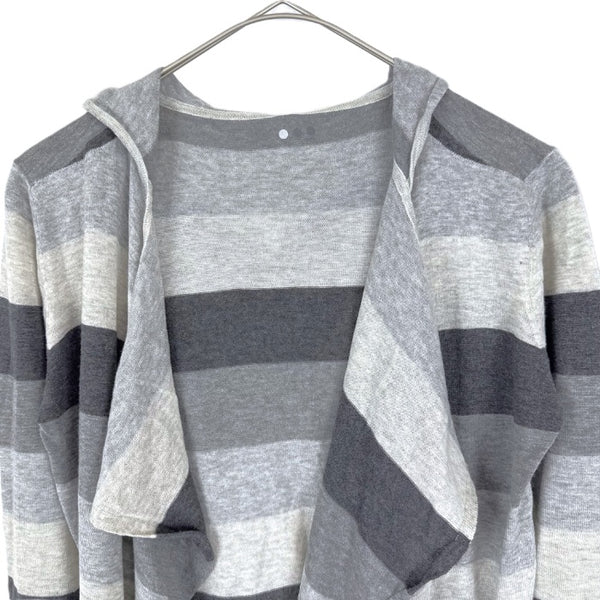 【中古】スリードッツ three dots フードカーディガン 太ボーダー ボタンレス グレー ダークグレー i0807n0203