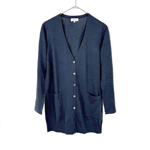 【中古】スキャパ SCAPA カーディガン 長袖 Vネック シンプル ウール ネイビー 紺 i0807n0213