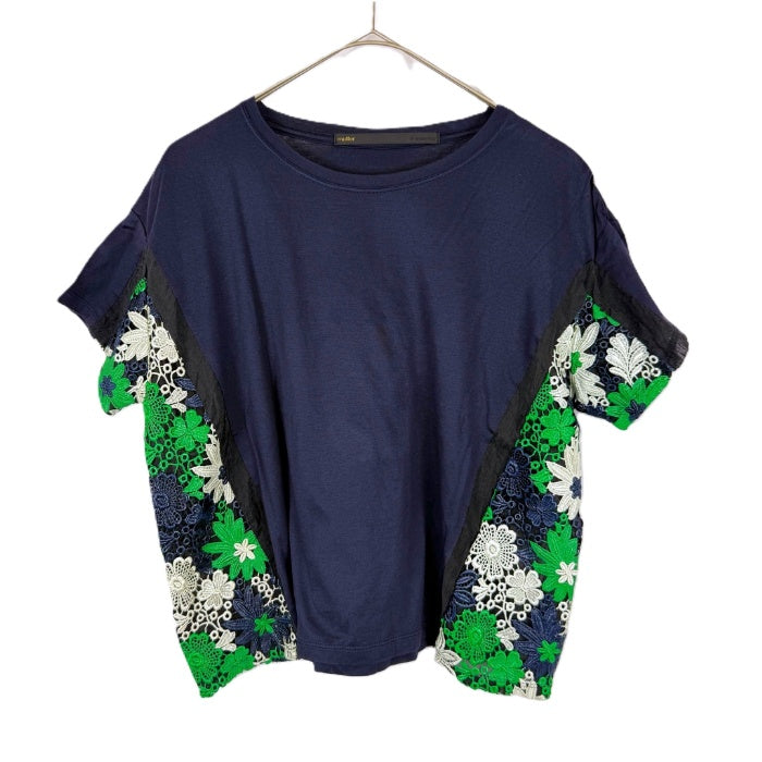 【中古】カルヴェン CARVEN カットソー 5分袖 レース くり抜き コットン チュニック ネイビー 紺 i0818n0034