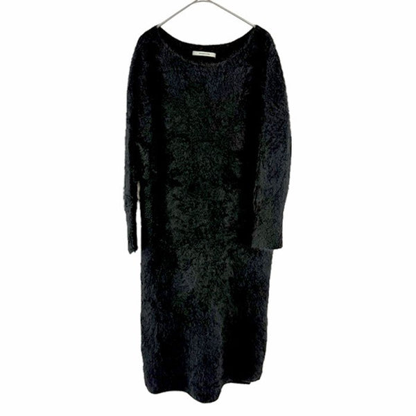 OUVRAGE CLASSE(ウヴラージュクラス)のニットワンピースです。 全体に起毛感のある素材で、シンプルながらも上品で大人っぽい一枚。 程よくゆとりのあるシルエットとロング丈で、体のラインを拾いにくく、さらっと一枚で着用できます。 ブラックカラーなので、きれいめにもカジュアルにも合わせやすく、ブーツやアウターとの相性も◎。 目立つ汚れはなく、まだまだご使用いただけるお品物です。