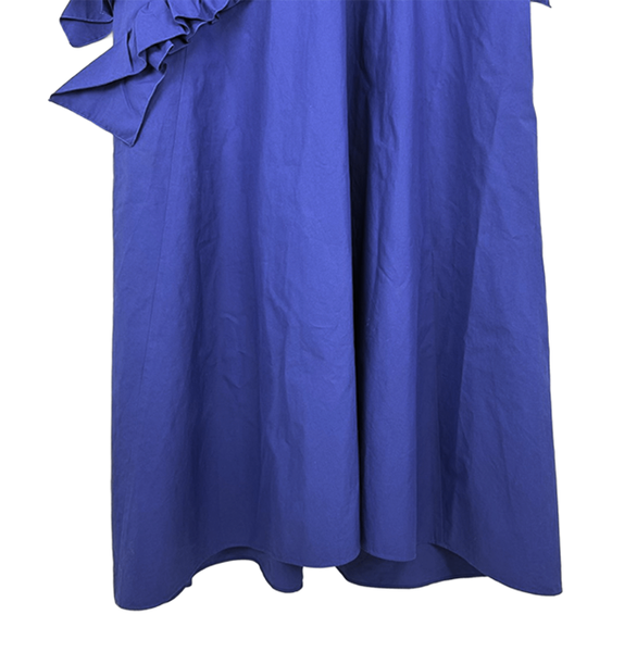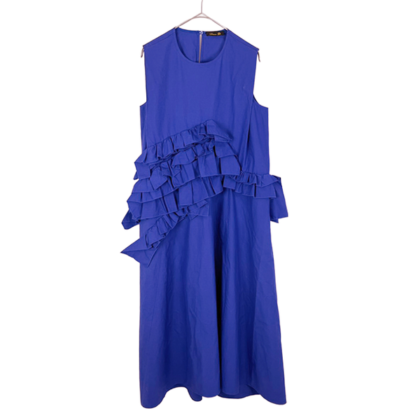 【中古】ドゥロワー Drawer ワンピース ブルー アシンメトリー フリル ノースリーブ ロング コットン100%