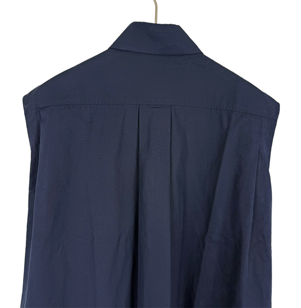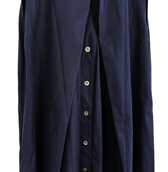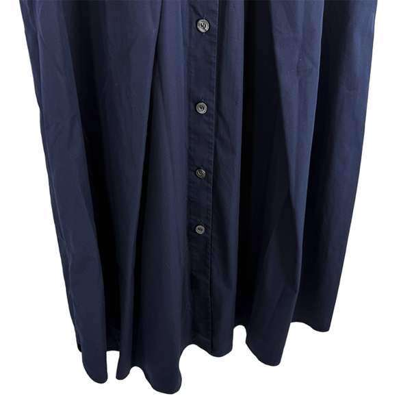 深みのあるネイビーカラーに、エルメスらしい上質なコットン素材を使用した一着。 シンプルながらも立体的なフレアシルエットで、動きのある美しいラインを演出します。 フロントボタンデザインとシャツカラー仕様で、上品さと抜け感を兼ね備えた仕上がり。 1枚でさらっと着るだけで洗練されたスタイルが完成します。 目立つ汚れなく綺麗なお品です。