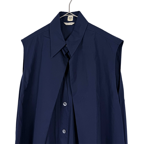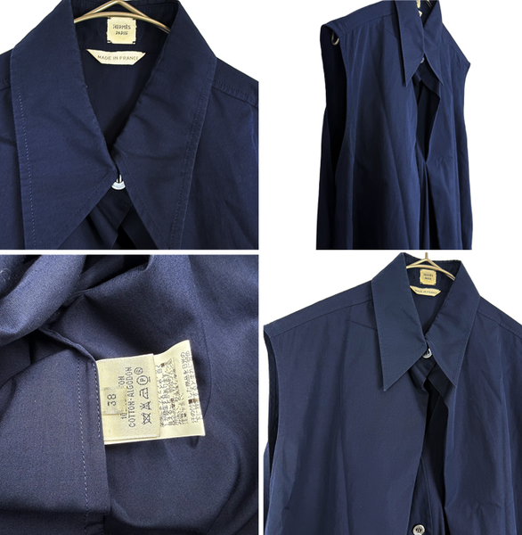 【中古】エルメス HERMES ノースリーブ ワンピース ネイビー シャツワンピース i1222h01275