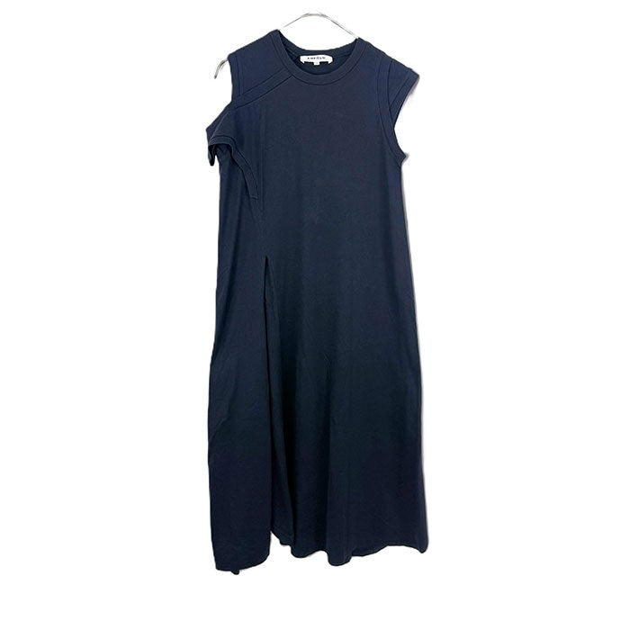 【中古】エンフォルド ENFOLD ロングワンピース 変形 フレンチスリーブ コットン ネイビー 紺 h0926wq00810