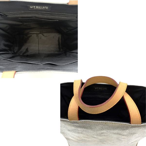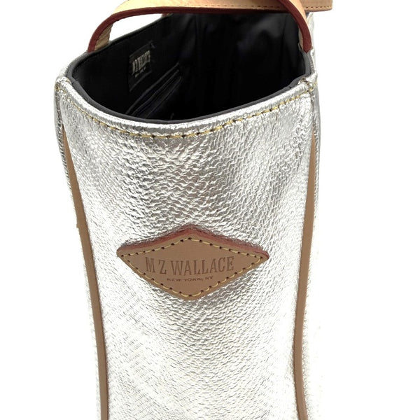 【中古】エムジーウォレス MZ WALLACE ハンドバッグ スクエア レザー ヘリンボーン シルバー i0911wq01510