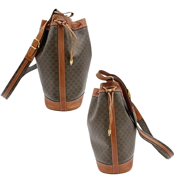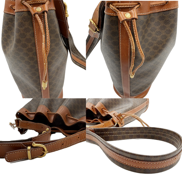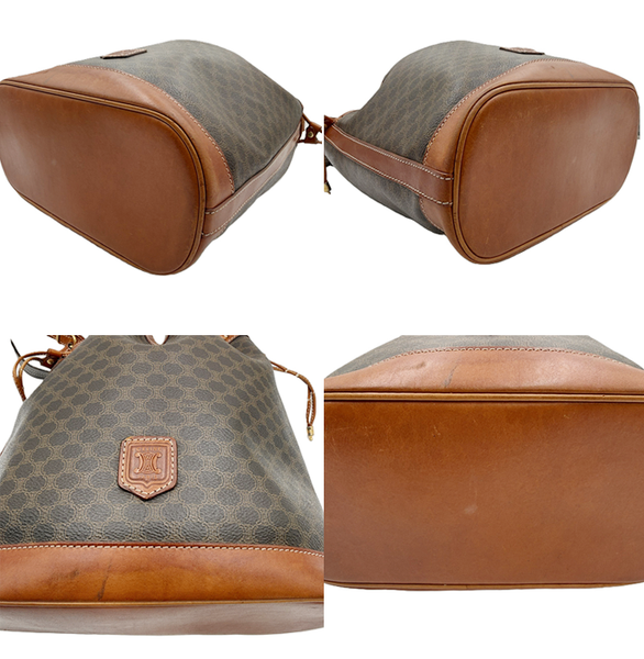 【中古】CELINE セリーヌ ショルダーバッグ 巾着バッグ マカダム柄 ブラウン系 レザー×PVC i0922lq01260