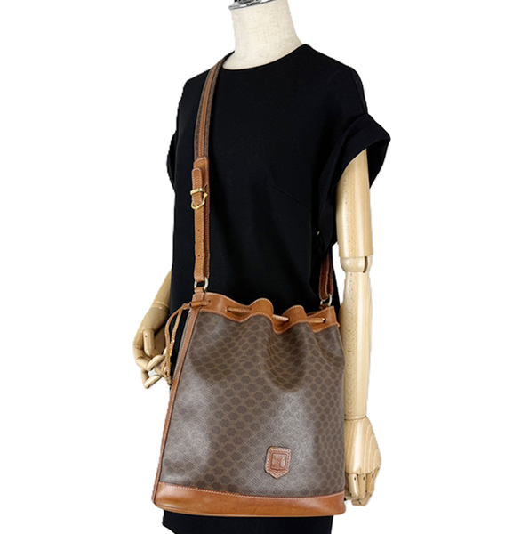 セリーヌ人気のマカダム柄ショルダー。 収納力が高く、普段使いしやすい巾着デザイン。 クラシックな雰囲気でどんなコーデにも合わせやすいバッグです。 全体的に使用感はございますが、まだまだご使用いただけるお品物です。
