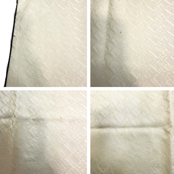 綺麗な光沢感に優しいアイボリーカラーが素敵なスカーフです。 少し目立つ汚れが所々にあります。傷みはなくまだまだご使用いただけるお品物です。品質タグなし。