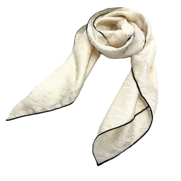 【中古】クリスチャンディオール Christian Dior スカーフ ロゴ生地 光沢 アイボリー ネイビー i0601oq00328