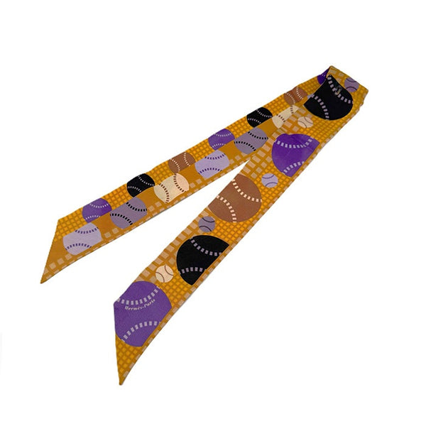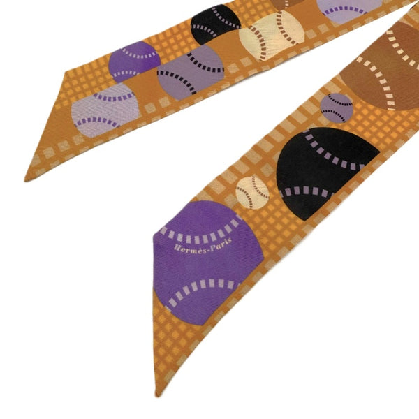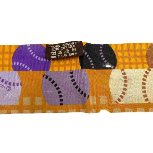 【中古】エルメス HERMES ツイリー スカーフ スリム テニスボール モチーフ オレンジ系 i0627aq00564