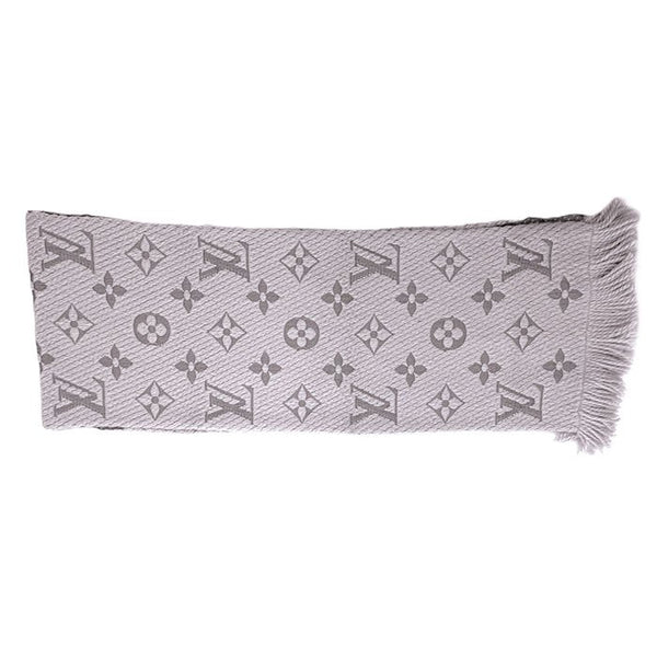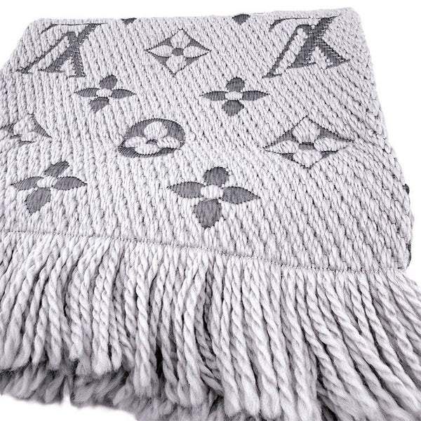 【中古】ルイ・ヴィトン Louis Vuitton マフラー ロゴマニア ライトグレー i0424lq009209
