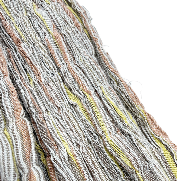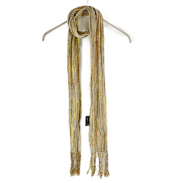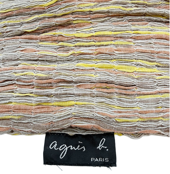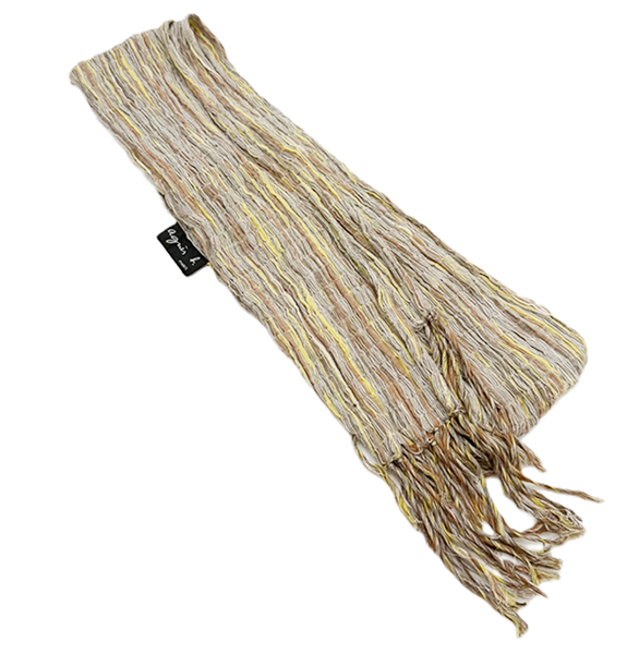 agnes b.(アニエスベー)のストライプストールです。 ニュアンスのあるクシュっとした立体的な編みで、 軽くて巻くだけでオシャレに決まるアイテムです。 気になる汚れや傷みはなく、全体的に綺麗なお品物です。