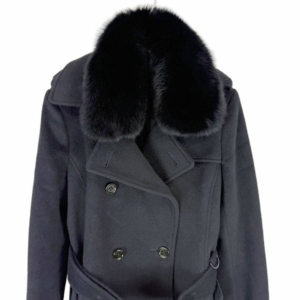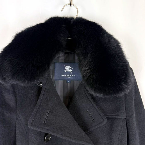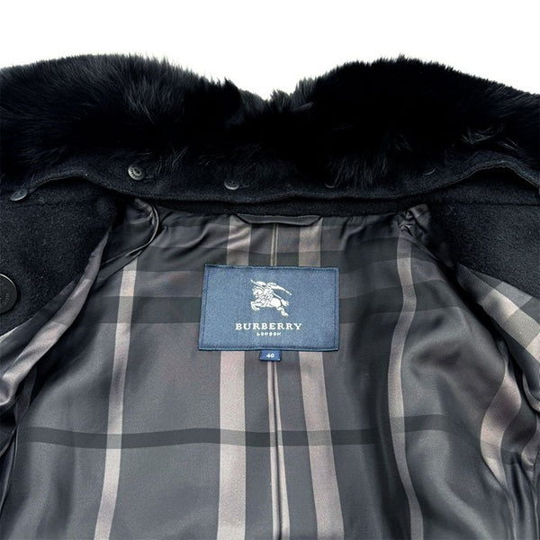 BURBERRYらしい上質でクラシックなデザインでフォックスファーが首元を華やかに演出します。 ウール素材で保温性もばっちり。 多少の毛羽立ち・使用感がございますが目立つ汚れなく綺麗なお品です。