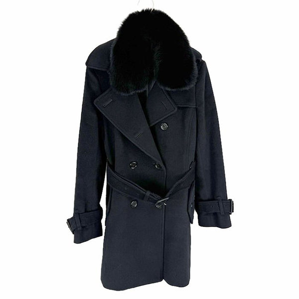 【中古】BURBERRY バーバリー ファー付きコート レディース ロング ウール フォックスファー i0606aq01427