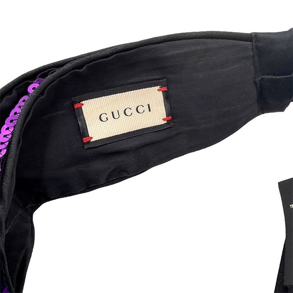 GUCCIの華やかなスパンコールデザインが目を引くヘアアクセサリーです。 コーディネートのアクセントとして活躍する存在感のあるアイテム。 裏地に若干の使用感がありますが、目立つダメージはなく、まだまだご使用いただけるお品物です。