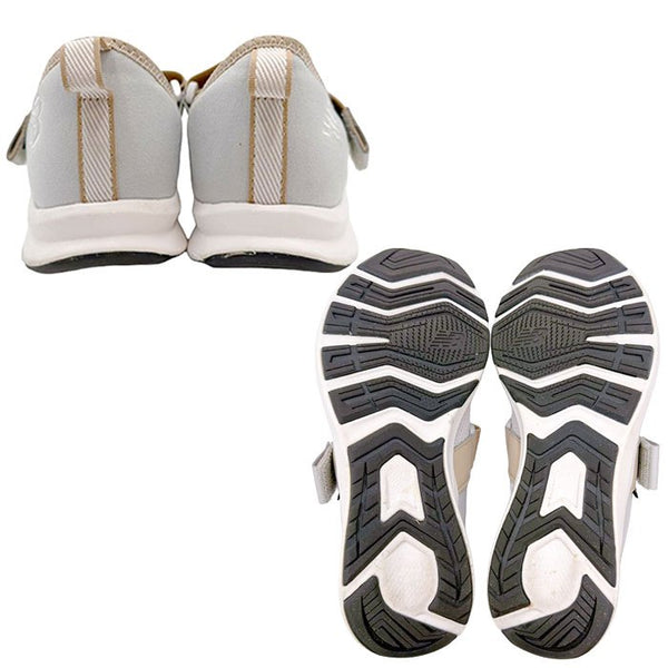 New Balance(ニューバランス)のレディーススニーカーです。 ライトグレー×ベージュの落ち着いたカラーで、スポーティーすぎず普段使いしやすいデザインです。 ストラップ仕様のため着脱がしやすく、軽量で歩きやすいのもポイント。 インソールはクッション性があり、日常使いやお散歩、通勤・通学にもおすすめです。 目立つ汚れなくまだまだご使用いただけるお品物です。