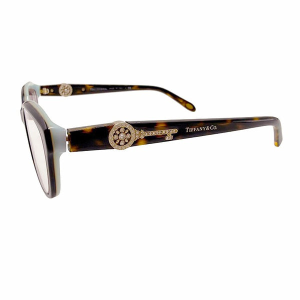 Tiffany & Co.(ティファニー)のメガネフレームです。 上品なブラウンカラーに、テンプル部分のさりげないロゴデザインが高級感のある一本。 女性らしいやや丸みのあるシルエットで、顔なじみがよく、きれいめにもカジュアルにも合わせやすいデザインです。 レンズは度入りの可能性があるため、交換前提でのご使用をおすすめします。 使用感はありますが、着用に支障のある大きなダメージはありません。 ティファニー純正ケース付きです。