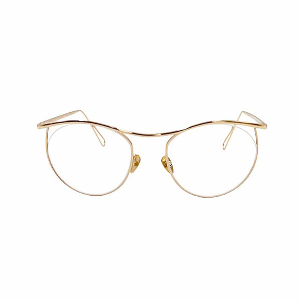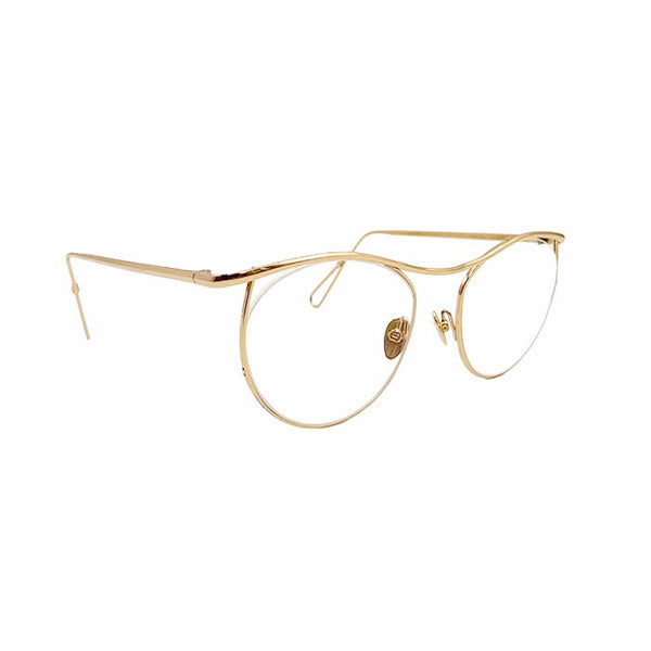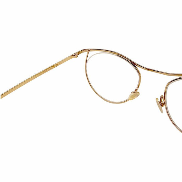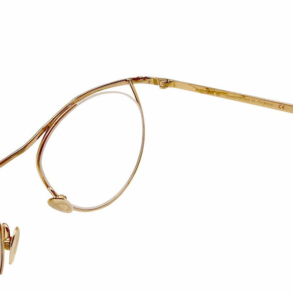 AHLEM(アーレム)のメガネフレームです。 フランス・パリ発のアイウェアブランドらしい、繊細で洗練されたデザインが魅力の一本。 華奢なゴールドカラーのメタルフレームに、丸みのあるラウンド型が上品で知的な印象を演出します。 軽量で掛け心地も良く、伊達メガネとしても度入りとしてもお使いいただけます。 使用感はありますが、着用に支障のある大きなダメージはありません。 純正ケース付きです。