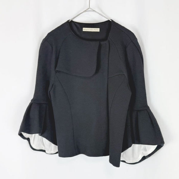 【中古】BALENCIAGA バレンシアガ ニットジャケット ブラック フレアスリーブ ノーカラー i1222h01140
