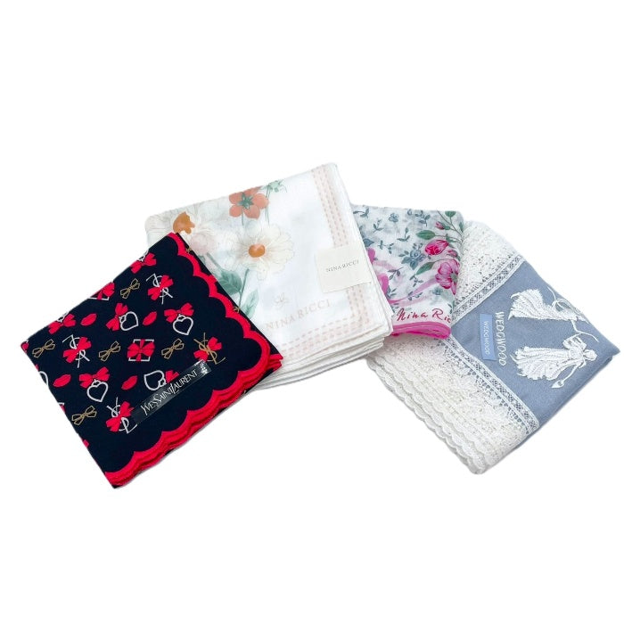 【中古】ハンカチ4点セット サンローラン/ニナリッチ/ウェッジウッド リボン 花柄 レース マルチ i0429wq0450