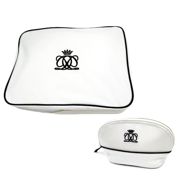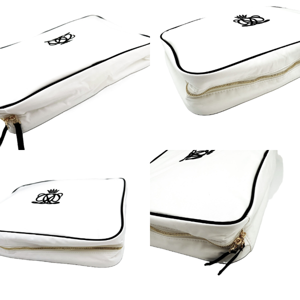 大きめサイズのトラベルポーチ×小ポーチの2個セットです。白地に黒ロゴが映える素敵なデザイン。 使用感や気になる汚れはなく、全体的に状態の良い綺麗なお品物です。