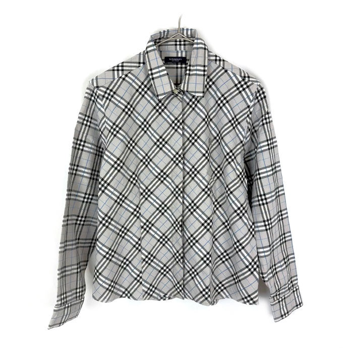 【中古】バーバリーブラックレーベル BURBERRY シャツ 長袖 コットン 無地 光沢 ダークブルー 青系 i0627aq01430
